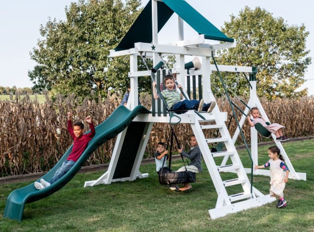 This is the smallest tower in our Sky Climber Series. It is a great option if you want to hang a tire swing underneath.