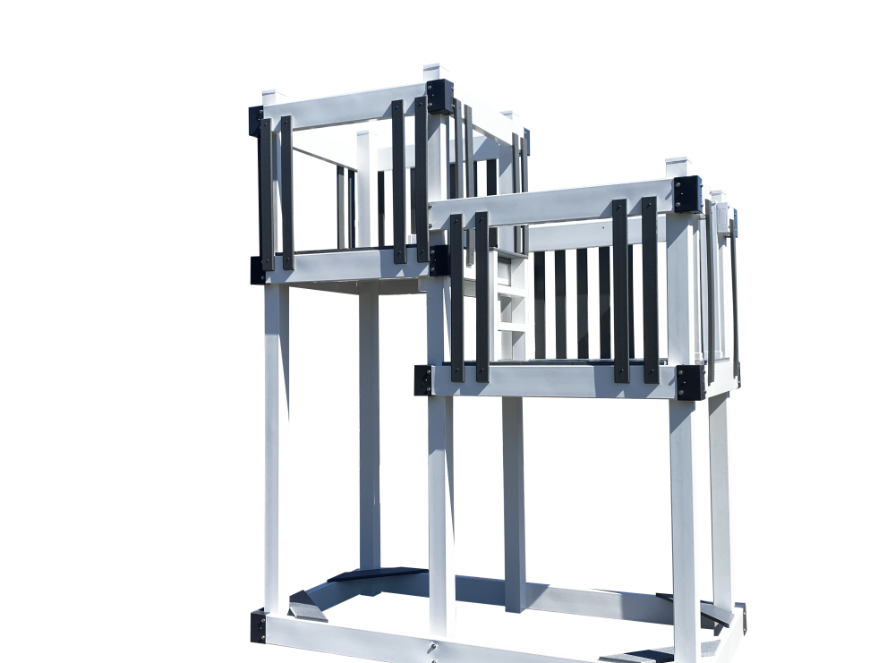 Add 2 levels of fun with the 4×8 double tower! Choosing a double tower allows you to add larger slides, taller rockwalls and more space for fun add-ons like bubble panels and tic-tac-toes.