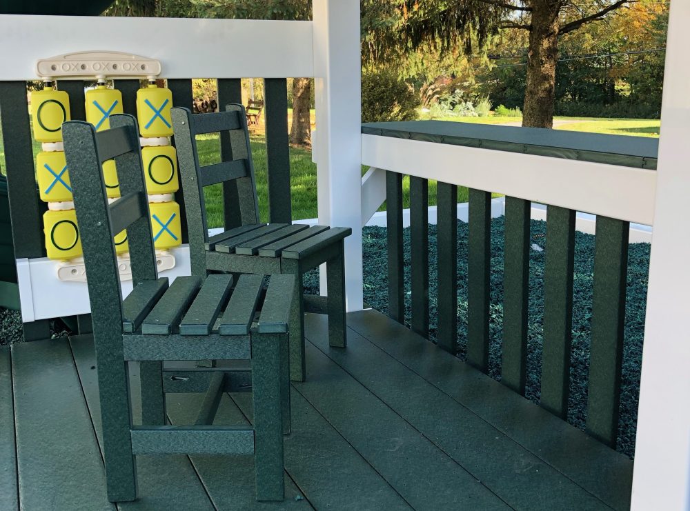 Don’t you need or want a sandbox? You can add decking underneath your tower! This adds a whole other space that can be used for things like our kid sized chairs, or something like storing toys!