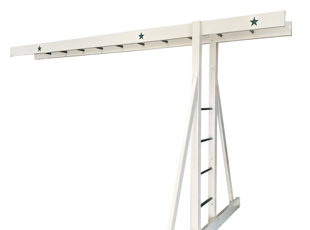 This swing beam has room for 4 swings. The position outside of the post is a great spot for a hammock swing!