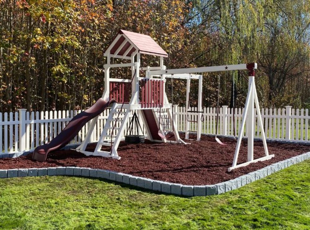 Rubber mulch is the best option for residential playground surfacing. It is available in 5 different colors.