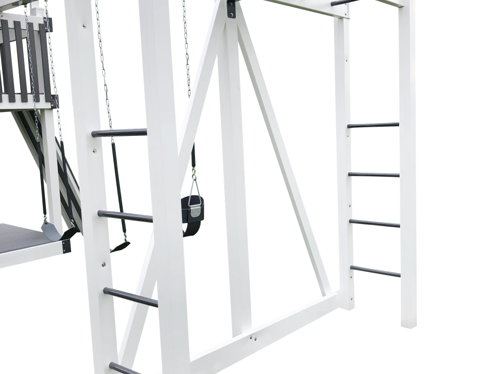 The yard saver climber unit is a great space saver for small yards, plus it also lets you have a designated area just for the monkeys in your family!
