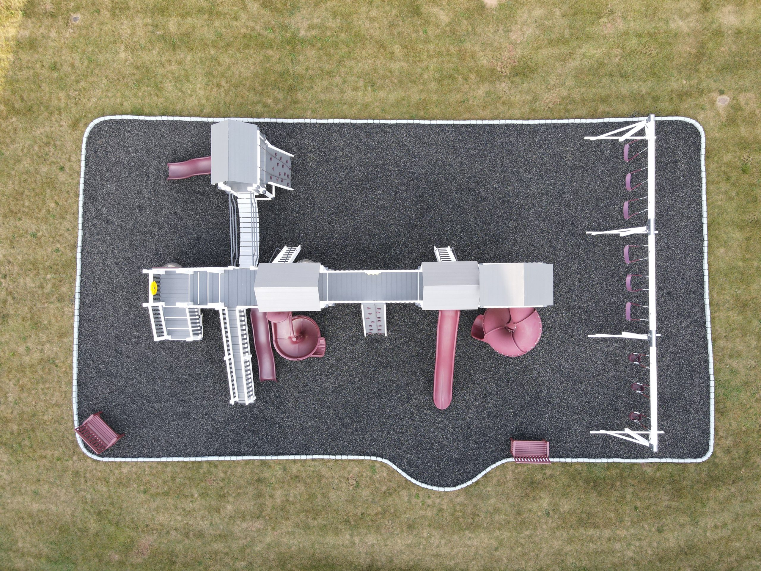 Swings: (6) Belt Swings, (3) Baby Swings, Tire Swing (under bridge)