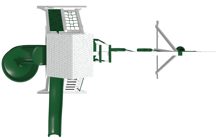 It features our modern Star Deluxe roof, a 5’ entrance ladder with handrail, and a rock wall/cargo net combo for climbing challenges. Slides include the 10’ Avalanche for speedy rides and the 7’ Spiral with a step-and-slide adapter for extra fun.