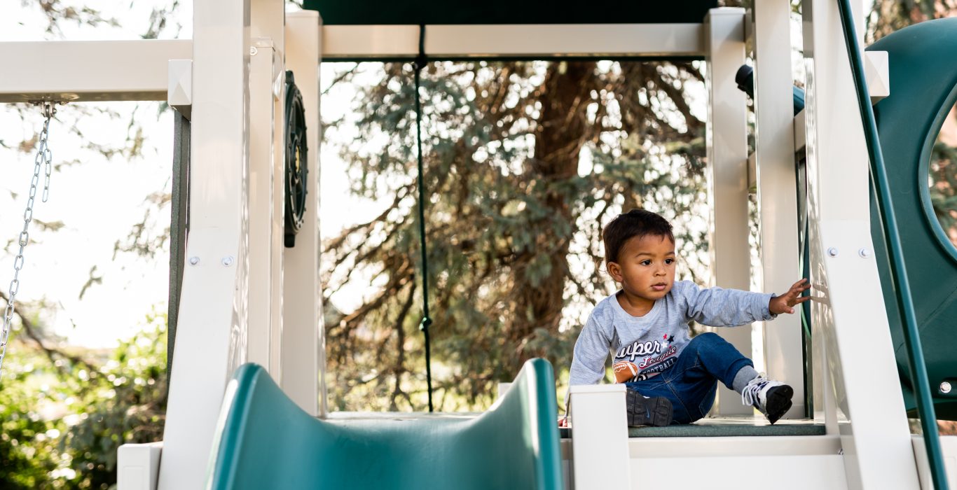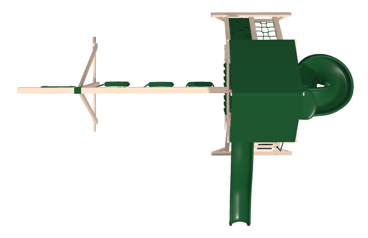 The 5’x5’ play deck sits on our sturdy A-frame tower, giving kids plenty of room to play pretend, relax, or just look out over the yard. For getting up, there’s a wide entrance ladder with a large handrail (perfect for younger kids), or a rock wall and cargo net combo for those who like a challenge. Coming down is just as fun, with the choice of a 10’ Wonder Wave slide or a twisty 5’ spiral slide.