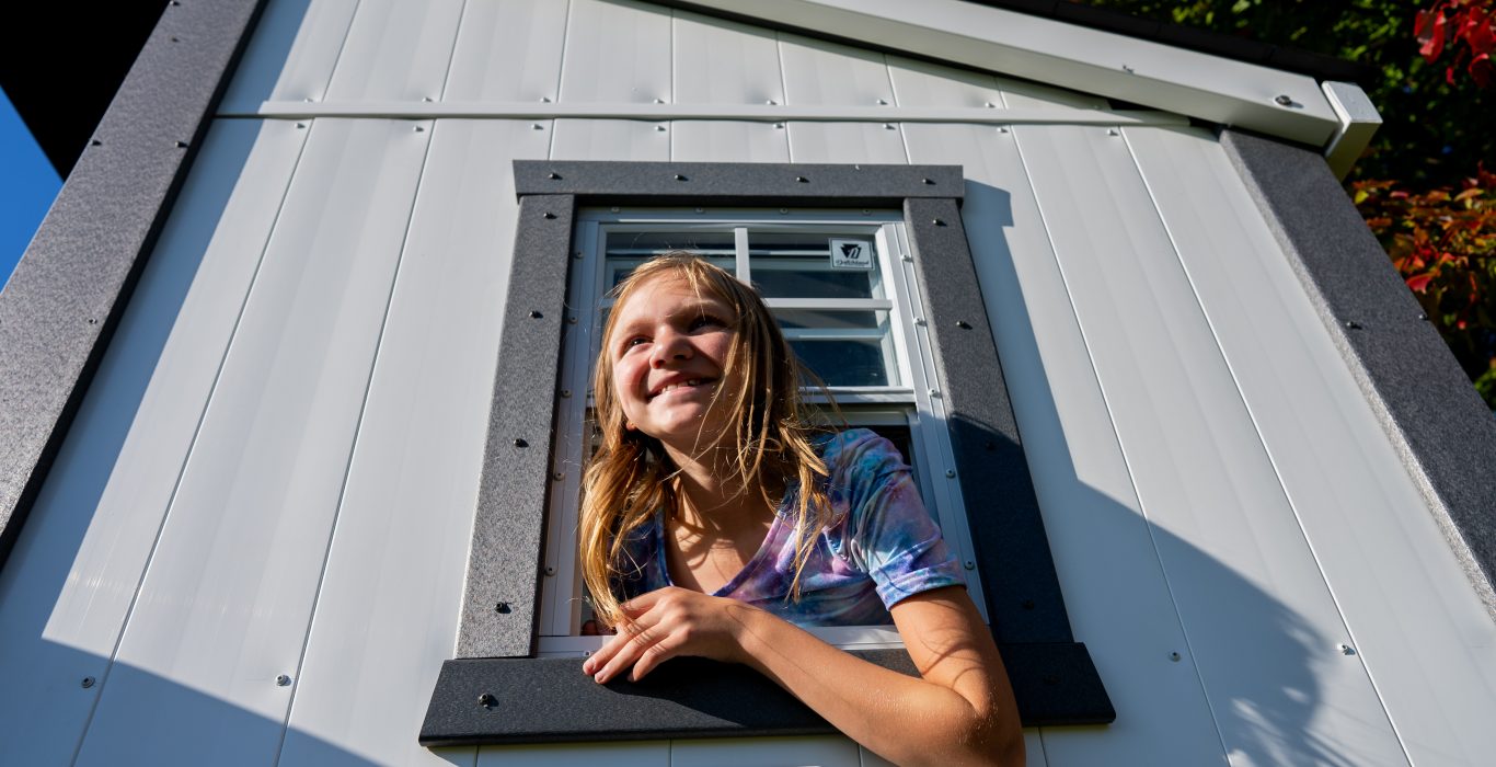 The four-position swing beam includes a belt swing, baby swing, Safe-T-Glider, and a hammock swing that’s a favorite spot for parents to take a moment while the kids keep themselves entertained. Add a steering wheel and telescope, and the playhouse transforms into a ship, fort, or observatory — whatever their imagination dreams up!