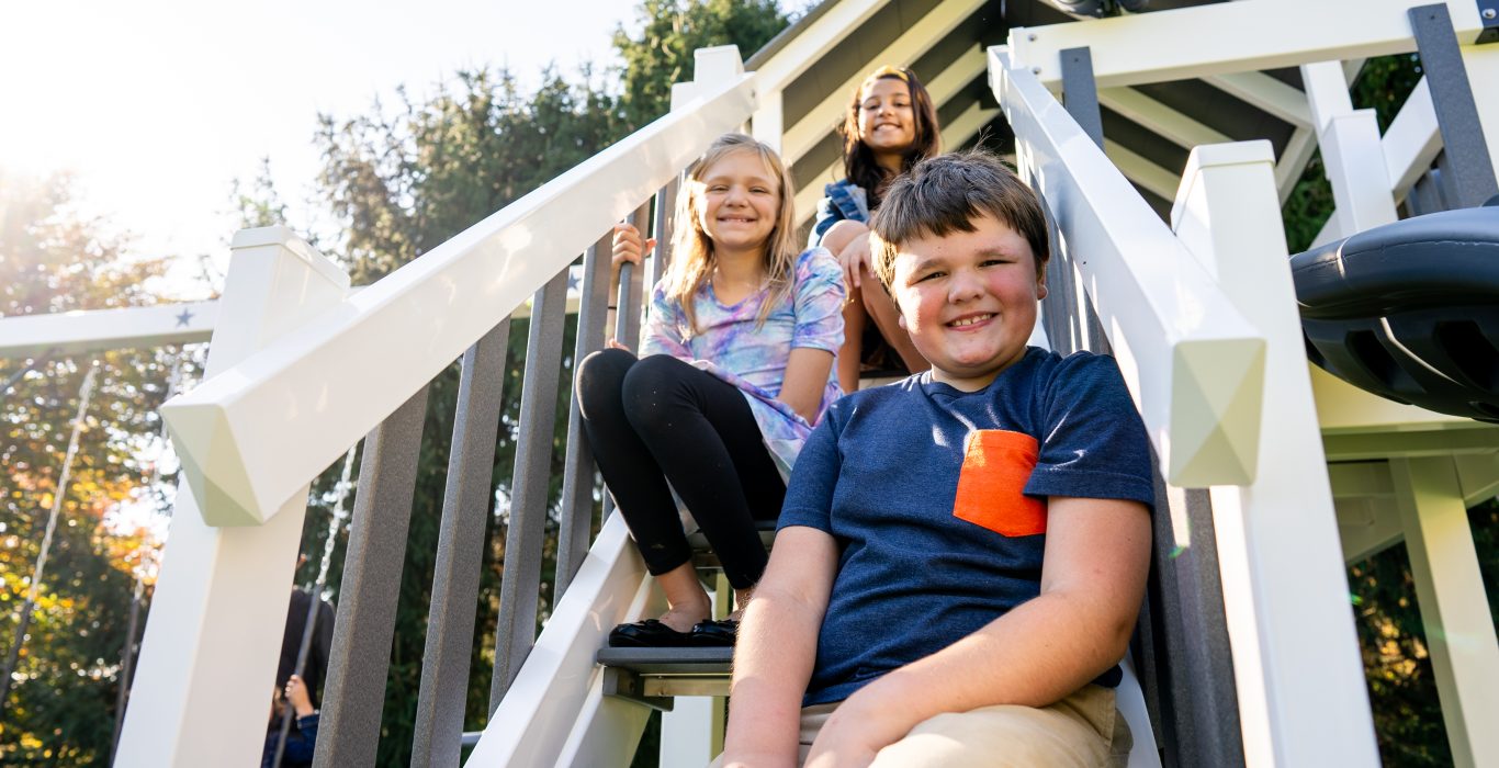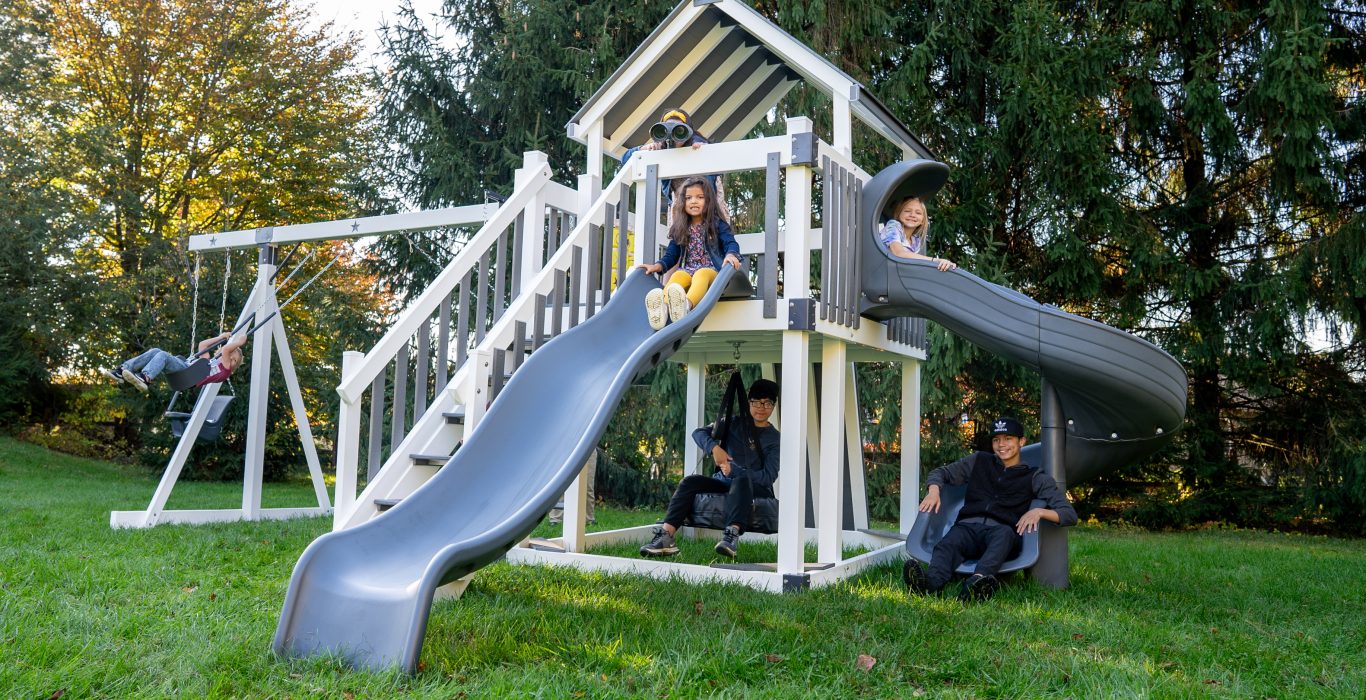 The Bright Star has one of our biggest deck sizes, with a 6’ x 8’ deck that sits 5 feet off the ground. That size gives kids a lot of space to spread out and play, and it still fits nicely in a medium to large backyard.